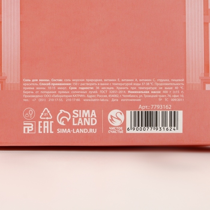Соль для ванны «Волшебного Нового Года!», 400 г, аромат нежной розы, ЧИСТОЕ СЧАСТЬЕ