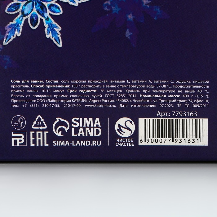 Соль для ванны «С Новым Годом!», 330 г, аромат яблока, ЧИСТОЕ СЧАСТЬЕ