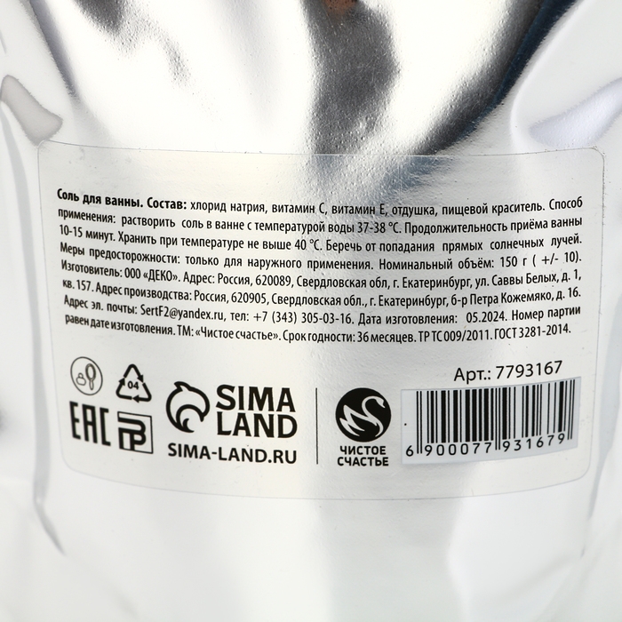Соль для ванны «С Новым Годом!», 150 г, аромат жасмина, ЧИСТОЕ СЧАСТЬЕ