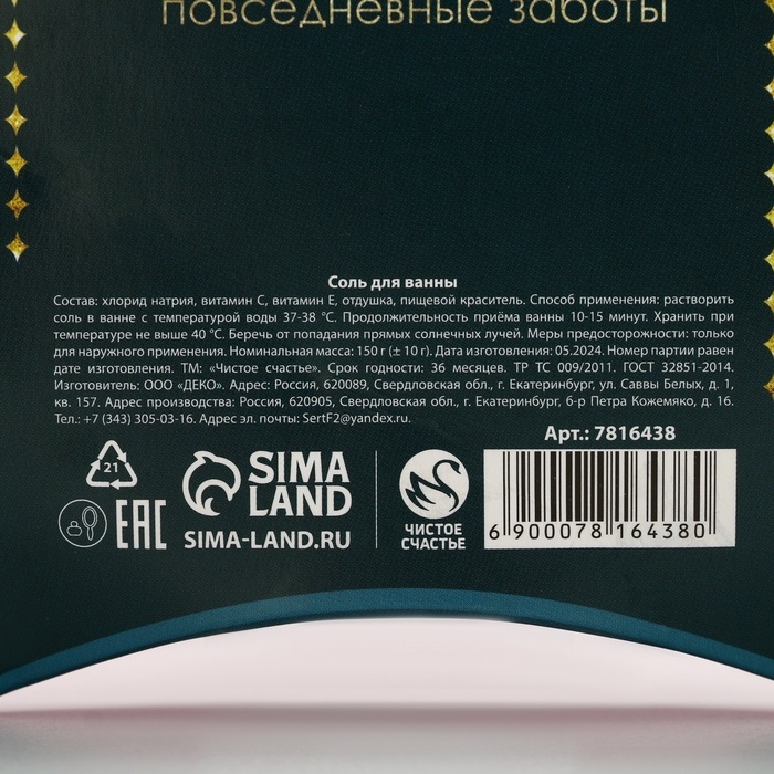 Соль для ванны «С Новым Годом!», 330 г, аромат яблока, ЧИСТОЕ СЧАСТЬЕ