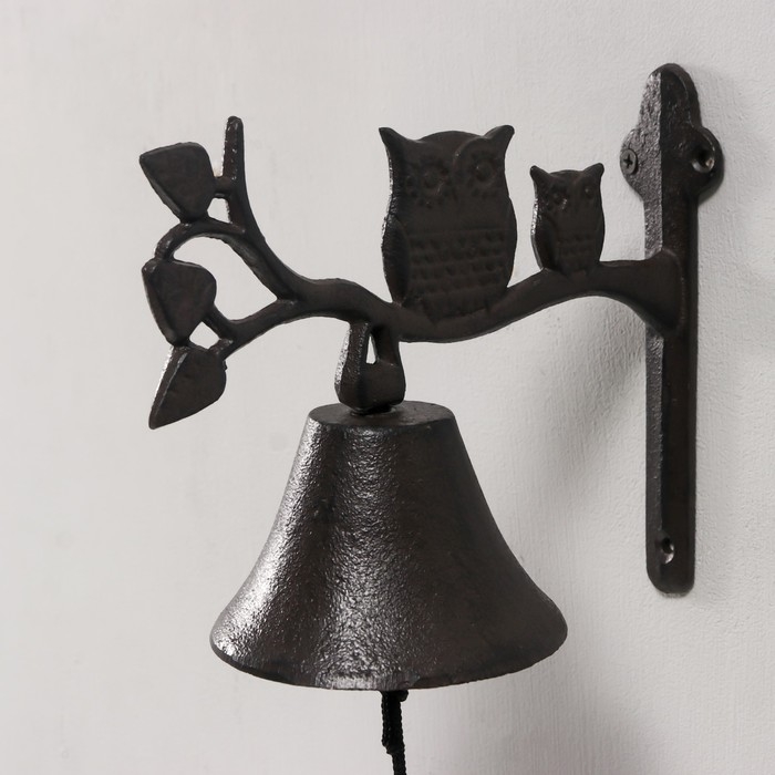 Колокол сувенирный чугун "Сова с совёнком на ветке" 20х10,5х17 см