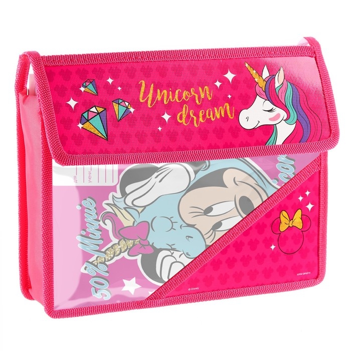 Папка для тетрадей А5, на липучке, пластик, Минни Маус и Единорог