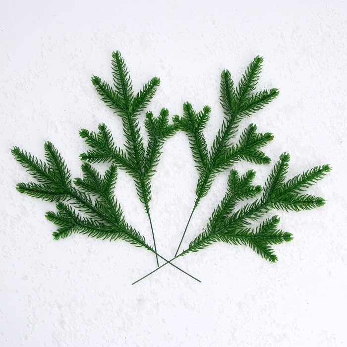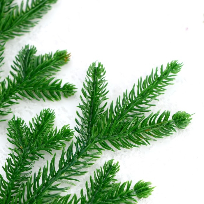 Декор для творчества выполнен в виде еловых веток. Они сделаны из пластика, являются декоративной имитацией настоящих еловых веток.