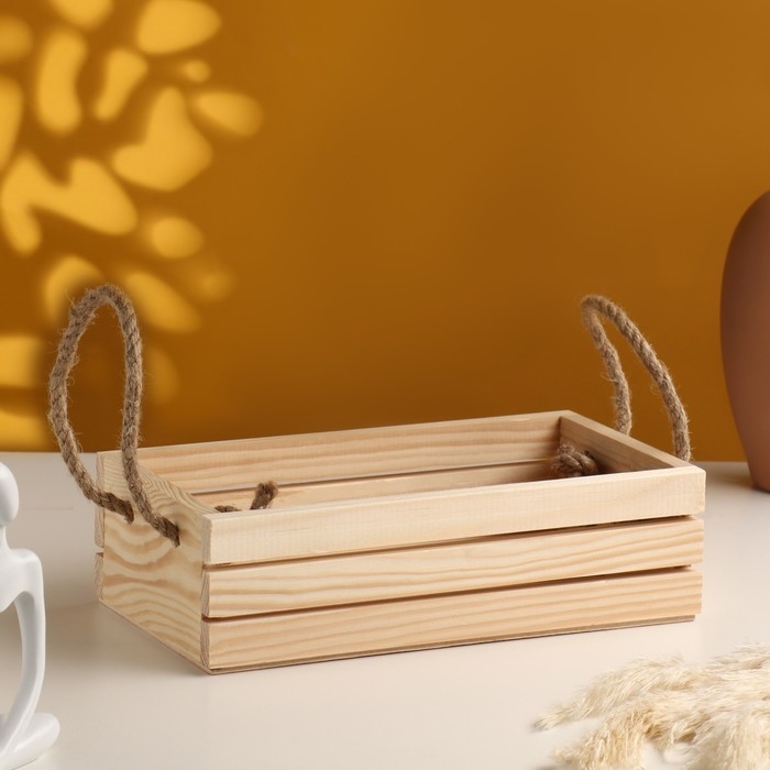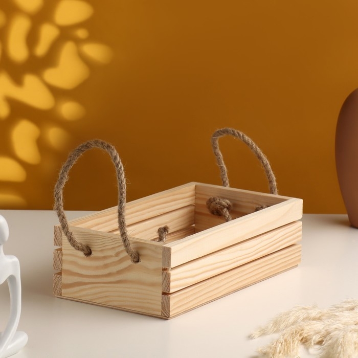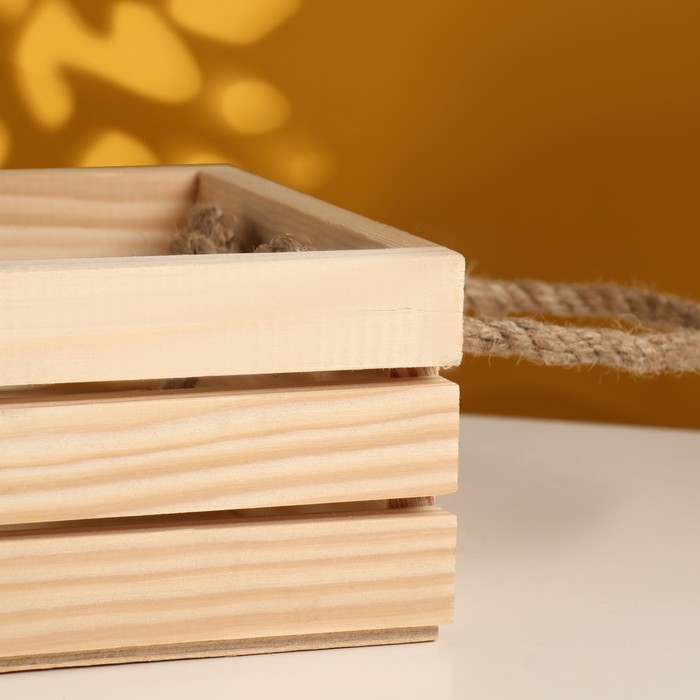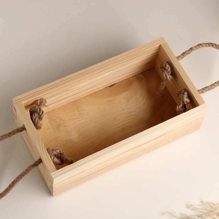 Кашпо деревянное ручки веревки 24,5х13,5х7 см