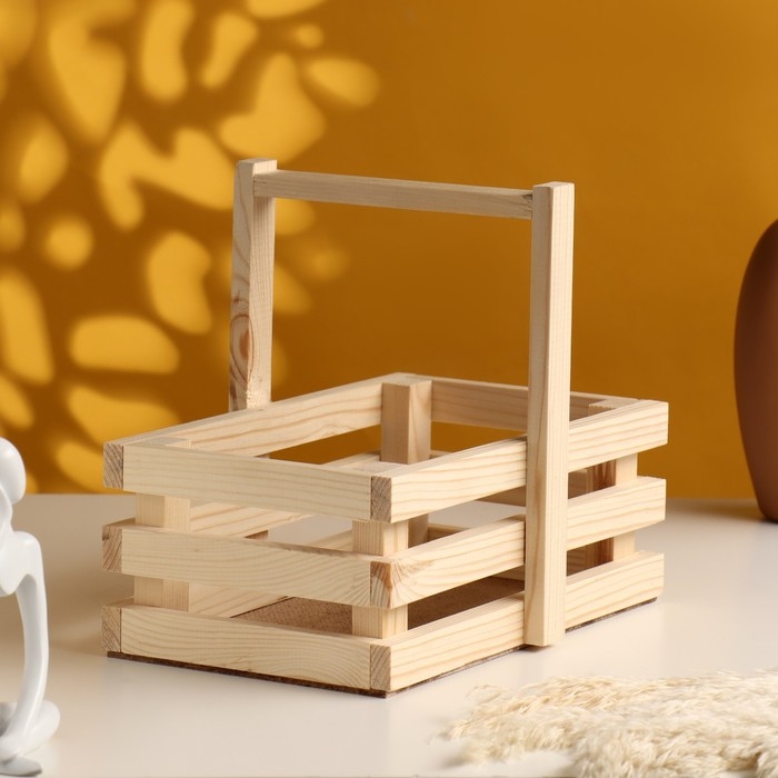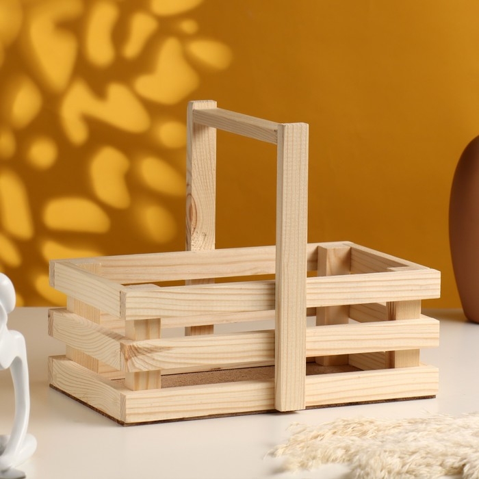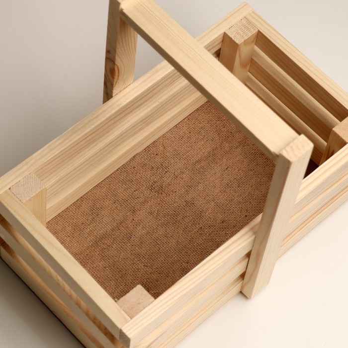 Кашпо деревянное трёхреечное с деревянной ручкой 24,5х14,5х20,5 см натуральное