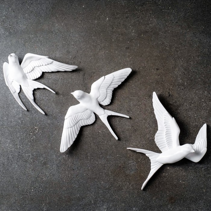 Подвесной декор "Ласточки" набор из 3шт, белые, 20х21х5см