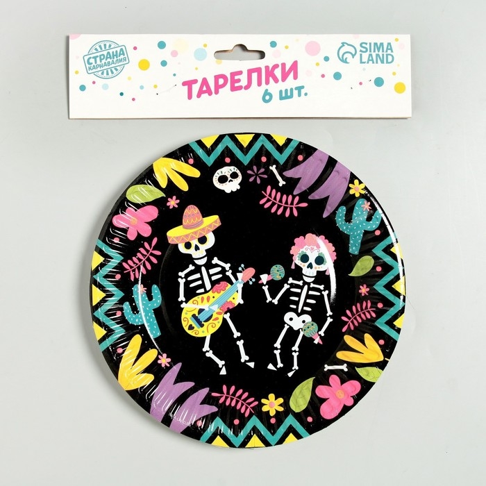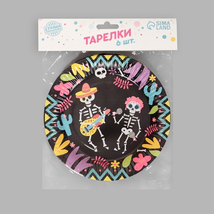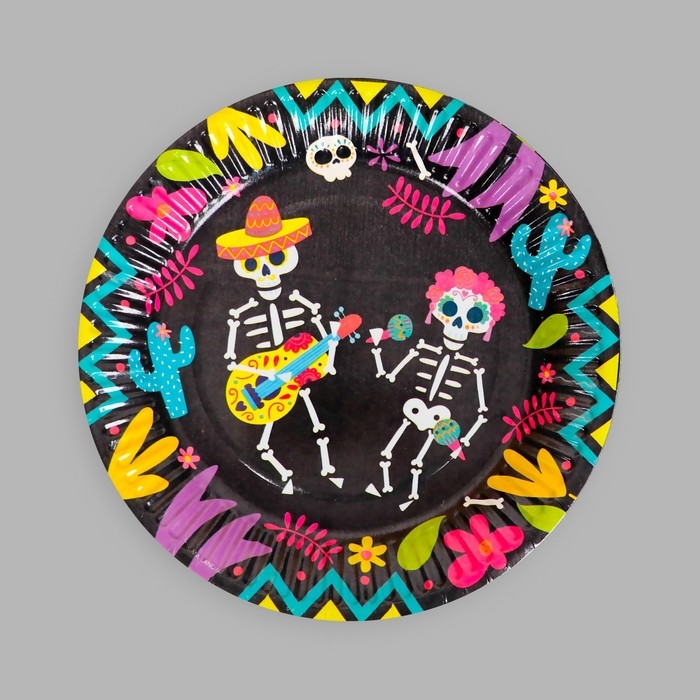 Тарелка одноразовая бумажная «Мексиканская вечеринка», 18 см, набор 6 шт, на Хэллоуин