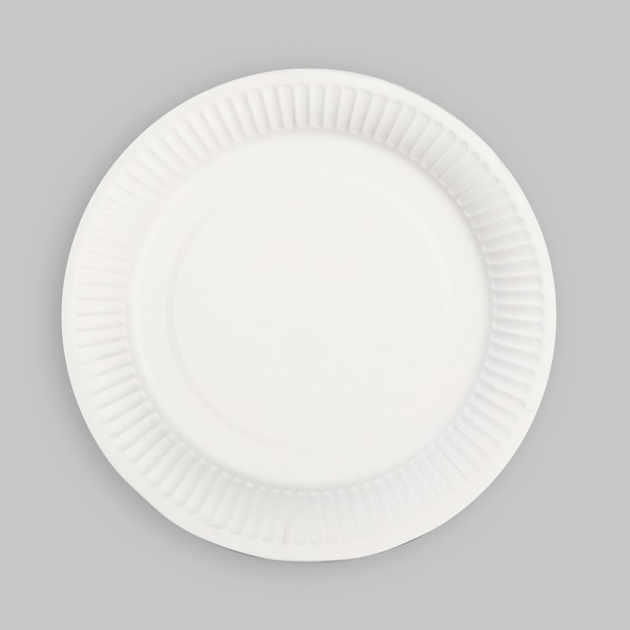 Тарелка сделана из плотного картона, что гарантирует её прочность и устойчивость к влаге.