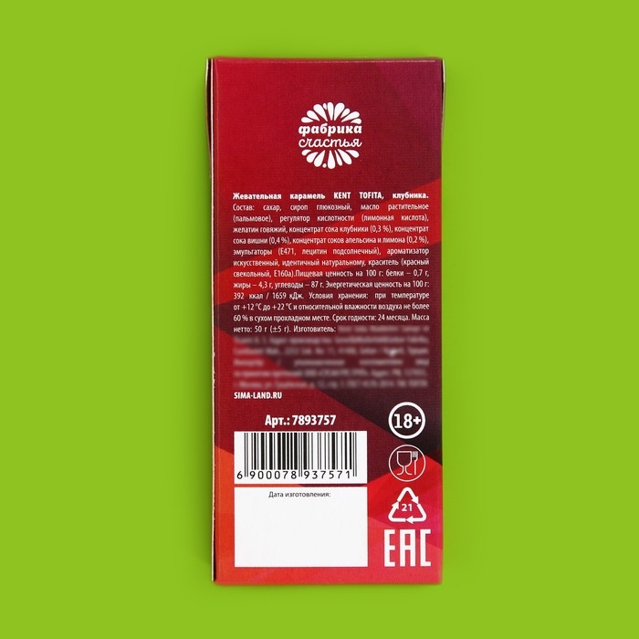 Конфеты жевательные «8 затяжек», вкус: клубника, 50 г (±5 г).