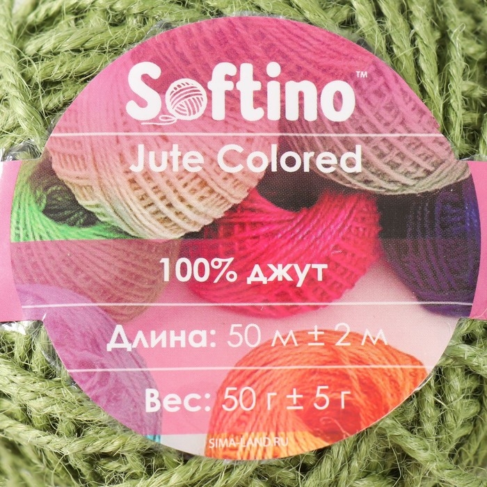 Пряжа 100% джут "Softino Jute Colored" 50м ±2м зелёный 50 гр