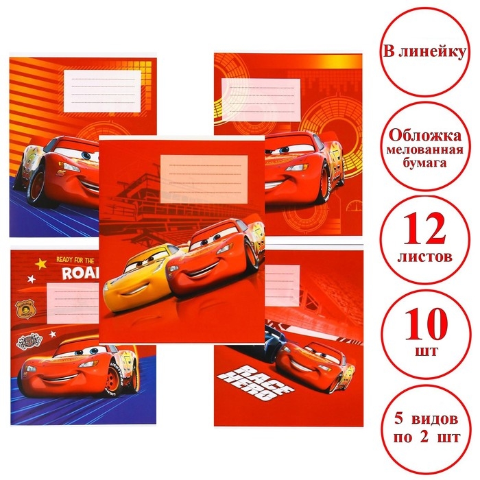 Набор тетрадей 10 штук, 12 листов, 1 сентября, в линейку, обложка бумага мелованная, Тачки