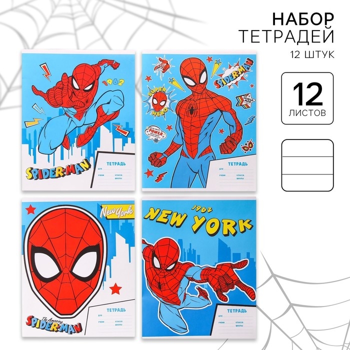 Набор тетрадей 12 штук, 12 листов, 1 сентября, в линейку, обложка бумага мелованная, Человек-паук