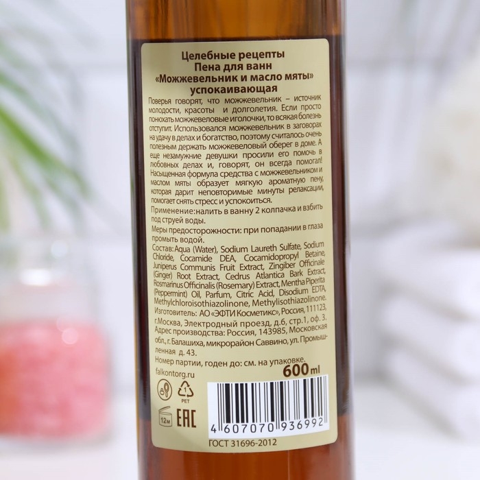 Пена для ванн «Можжевельник и масло мяты» успокаивающая, 600 мл