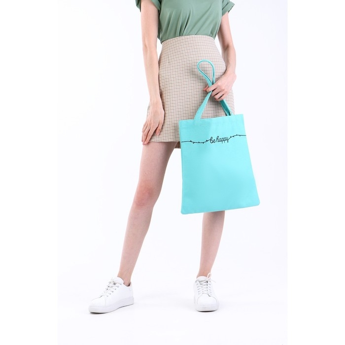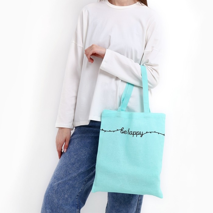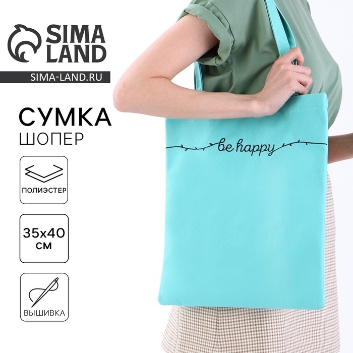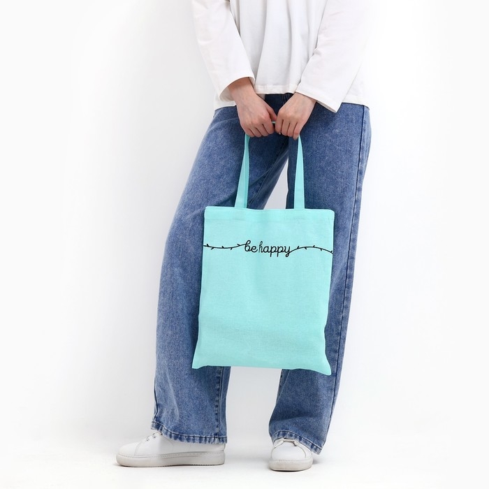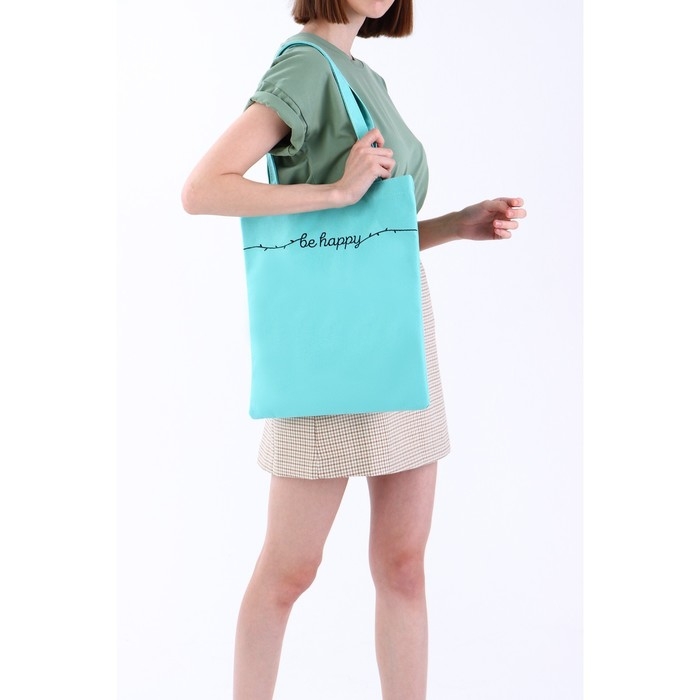 Шопер детский для девочки Be happy, 35 х 0,5 х 40 см, вышивка, бирюзовый
