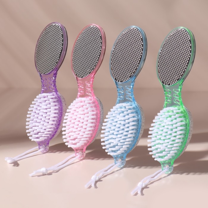 Пилка для ног, 4 в 1, с пемзой, с щёткой, 17 см, цвет МИКС