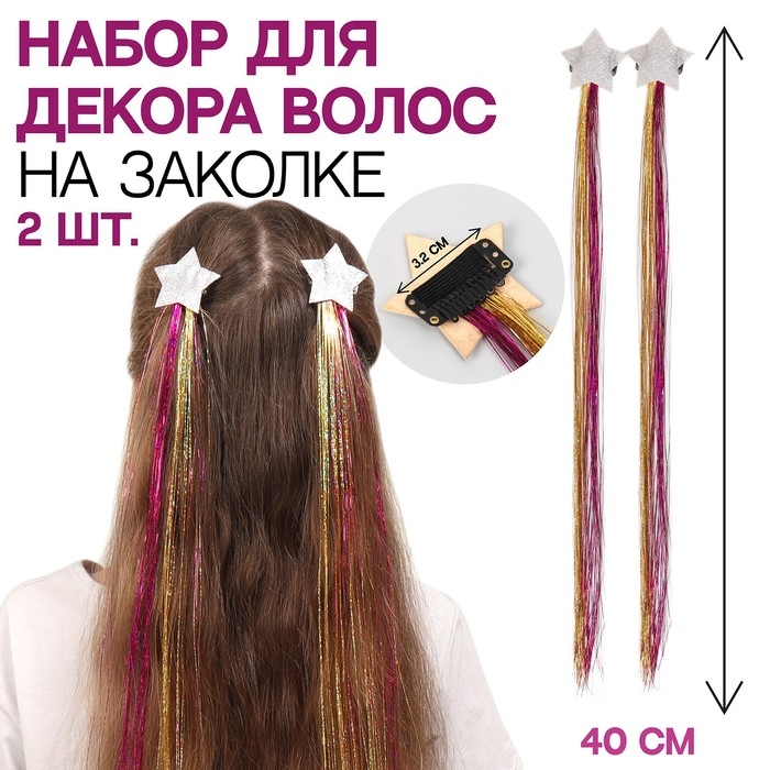 Набор декора для волос «Звезда», на заколке, 2 шт, 40 см, разноцветный
