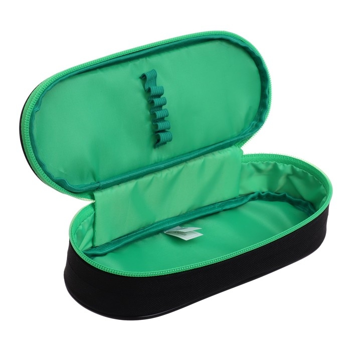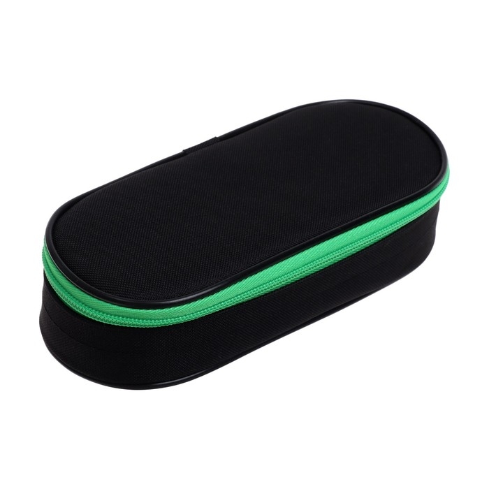 Пенал-футляр 95 х 205 х 45 мм, мягкий, текстильный, Calligrata, ПМК 27-20 Black, резинка на клапане, черный/зелёный