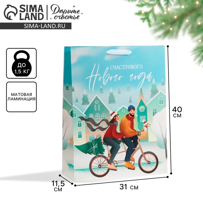 Пакет подарочный новогодний ламинированный «Счастье рядом с тобой», L 31 х 40 х 11,5 см, Новый год