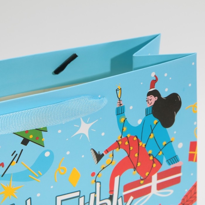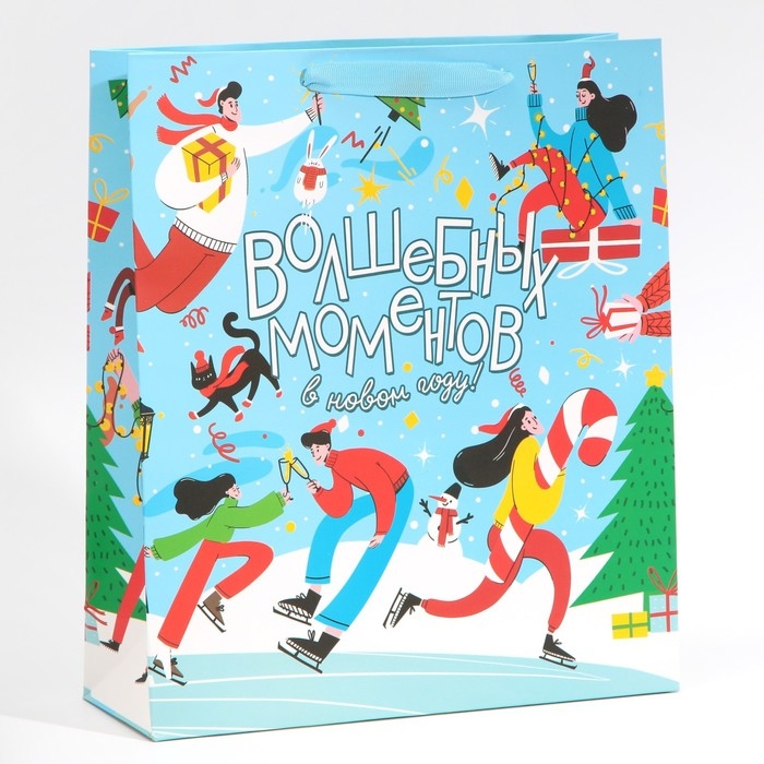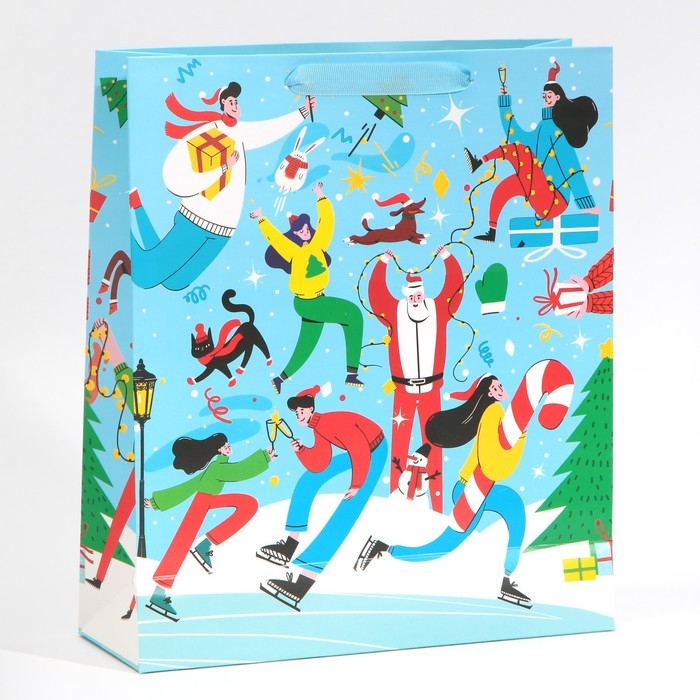Пакет подарочный новогодний ламинированный «Зимний каток», M 26 х 30 х 9 см, Новый год