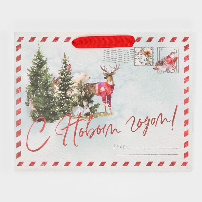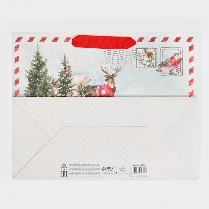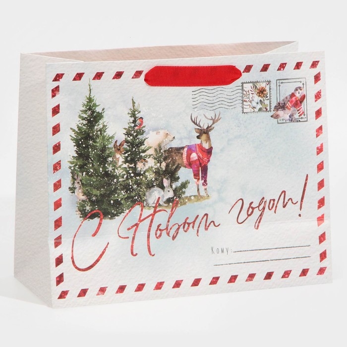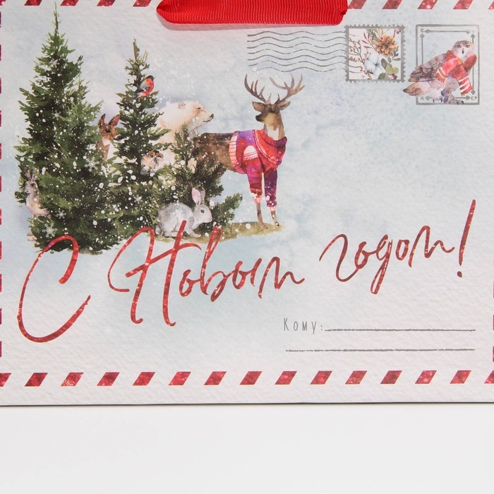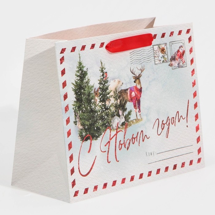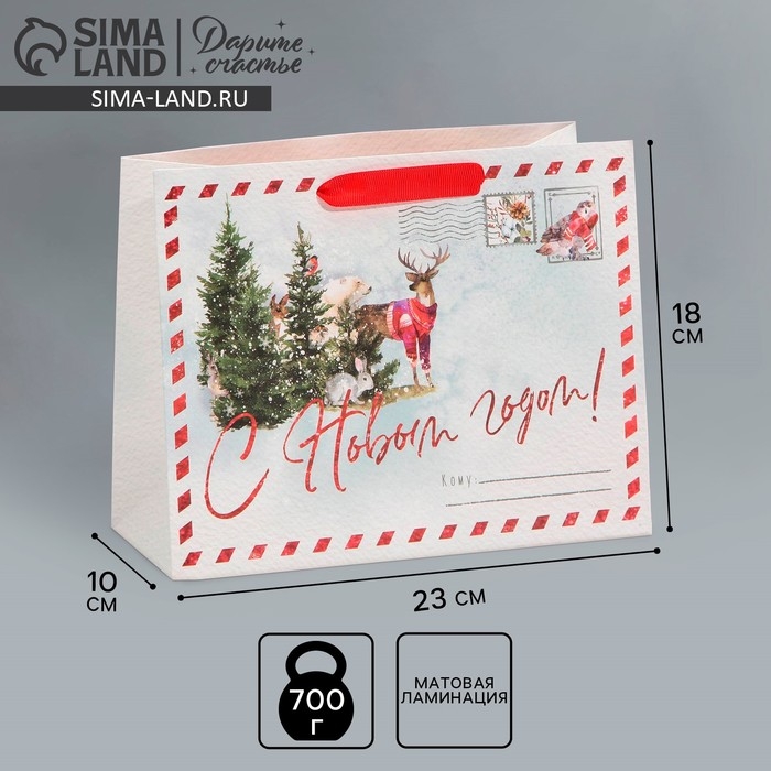 Пакет подарочный новогодний ламинированный «Новогодняя открытка», MS 18 х 23 х 10 см, Новый год