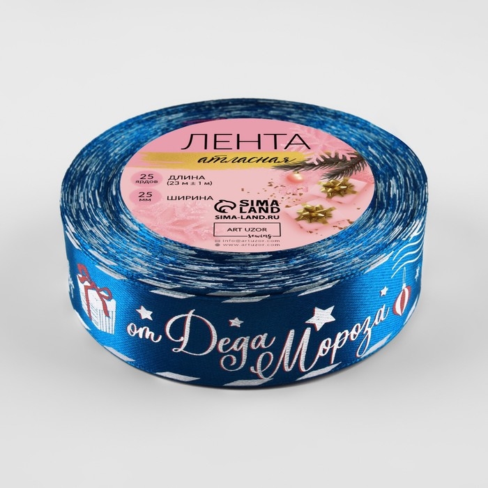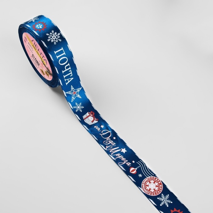 Новый год! Лента атласная «Почта от Деда Мороза», 25 мм, 23 ± 1 м, цвет синий №40