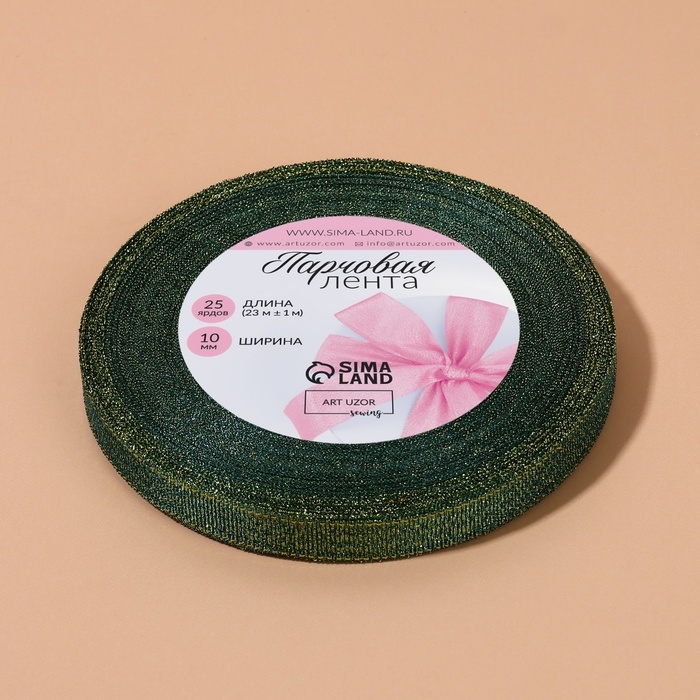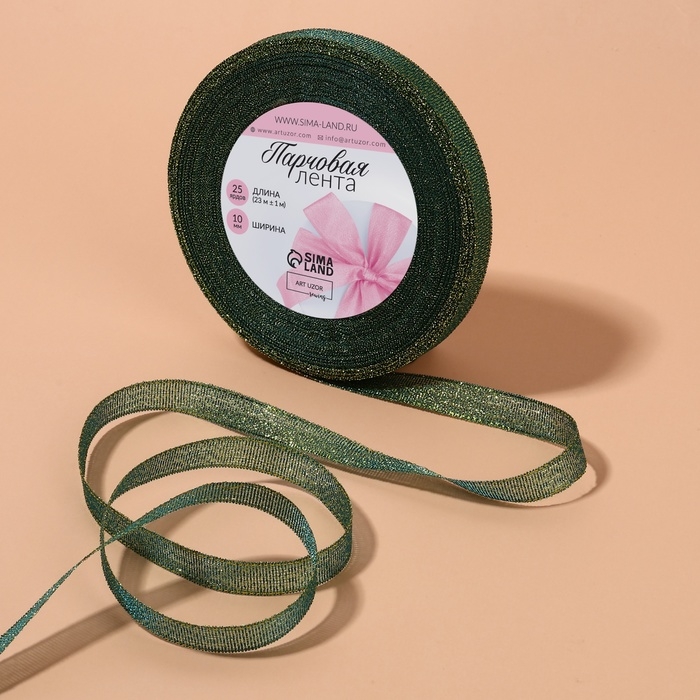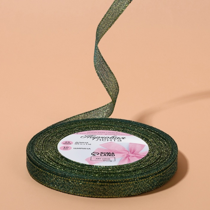 Лента парчовая, 10 мм, 23 ± 1 м, цвет зелёный
