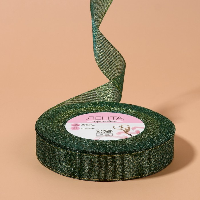 Лента парчовая, 20 мм, 23 ± 1 м, цвет зелёный