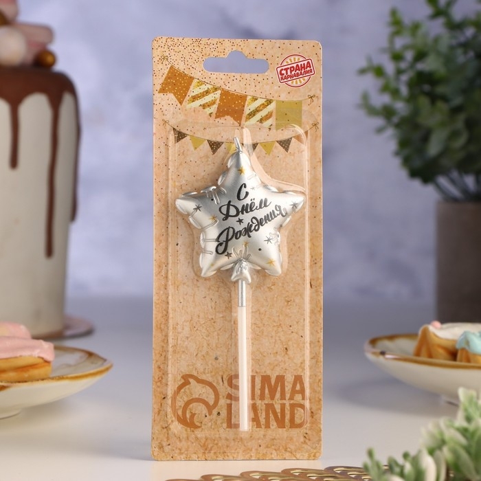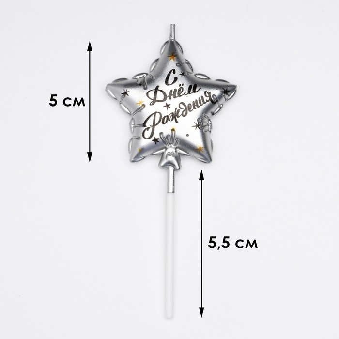 Свеча в торт на шпажке "Воздушный шарик.Звезда", 5,5 см, серебряная