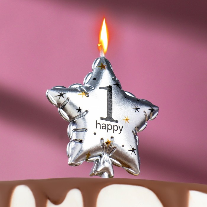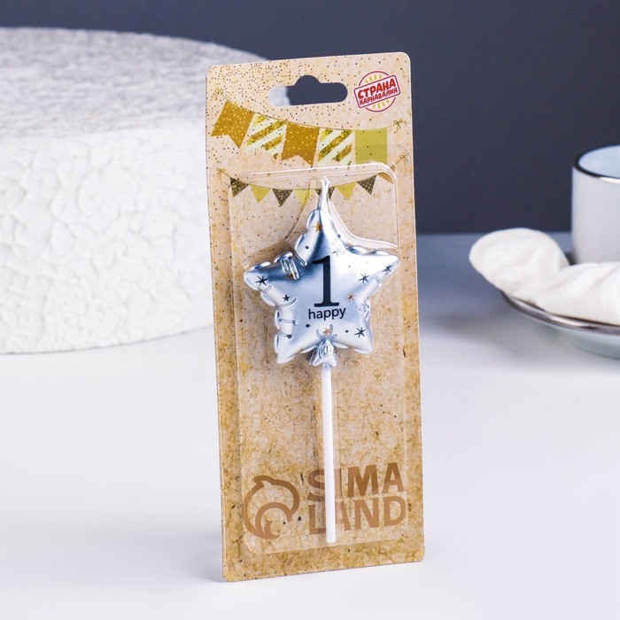 Свеча в торт на шпажке "Воздушный шарик.Звезда", цифра 1, 5,5 см, серебряная
