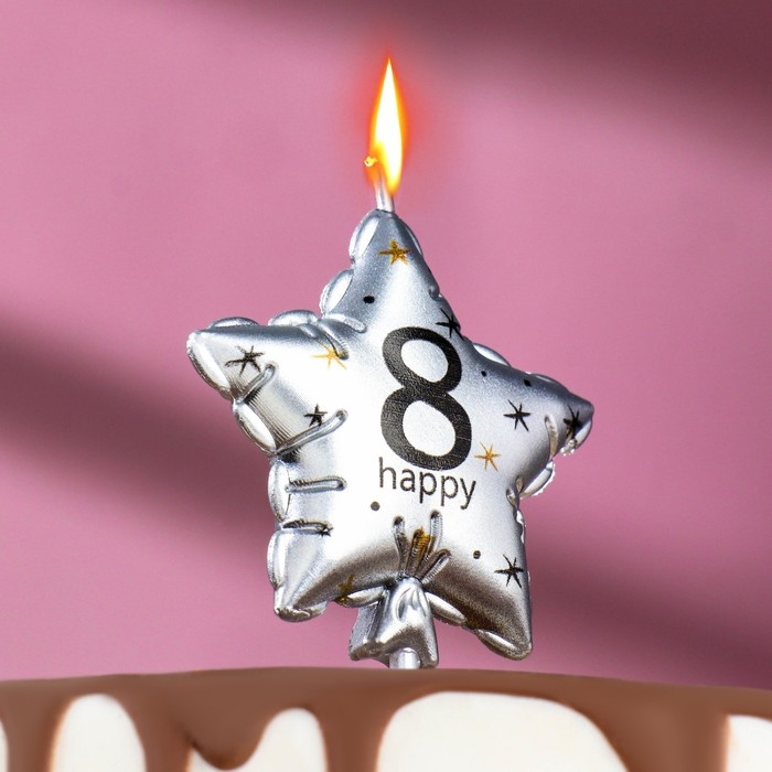 Свеча в торт на шпажке "Воздушный шарик.Звезда", цифра 8, 5,5 см, серебряная