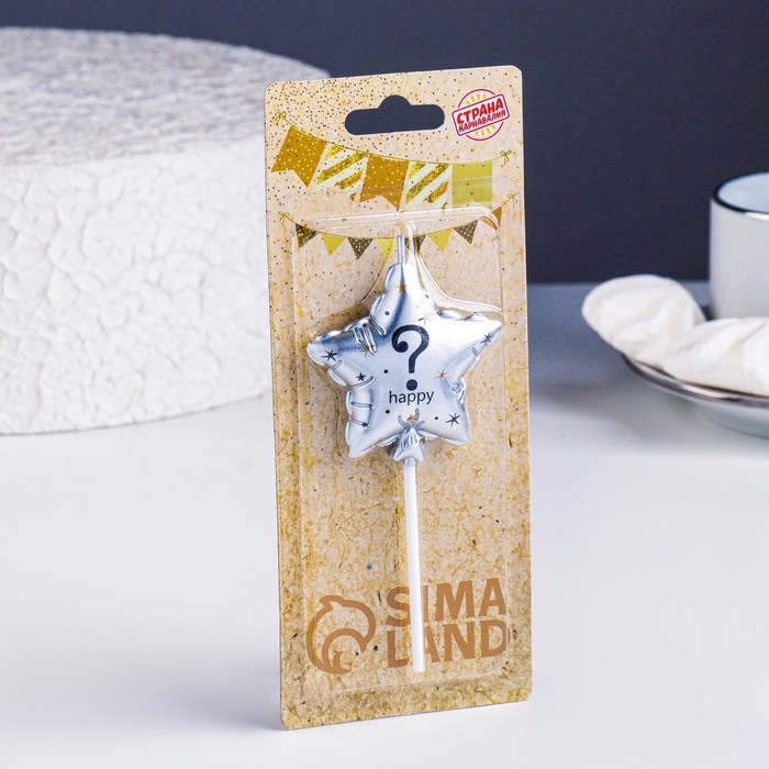 Свеча в торт на шпажке "Воздушный шарик.Звезда", знак вопроса,5,5 см, серебряная