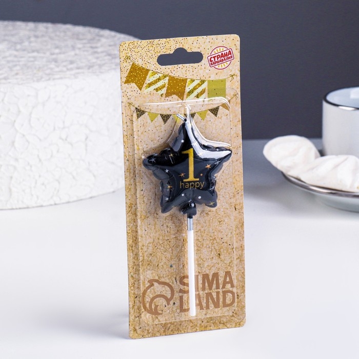Свеча в торт на шпажке "Воздушный шарик.Звезда", цифра 1, 5,5 см, черная с золотом