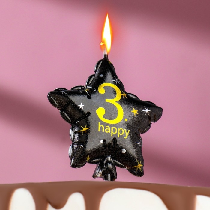 Свеча в торт на шпажке "Воздушный шарик.Звезда", цифра 3, 5,5 см, черная с золотом