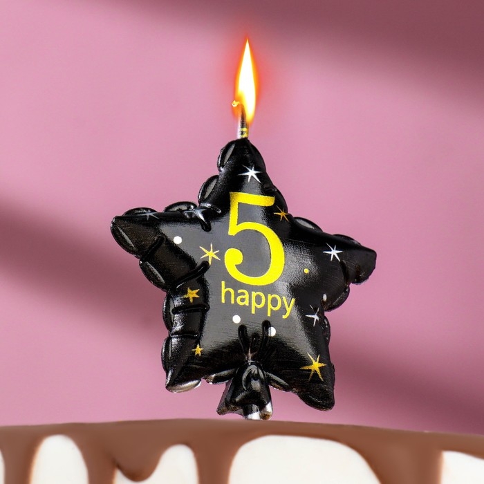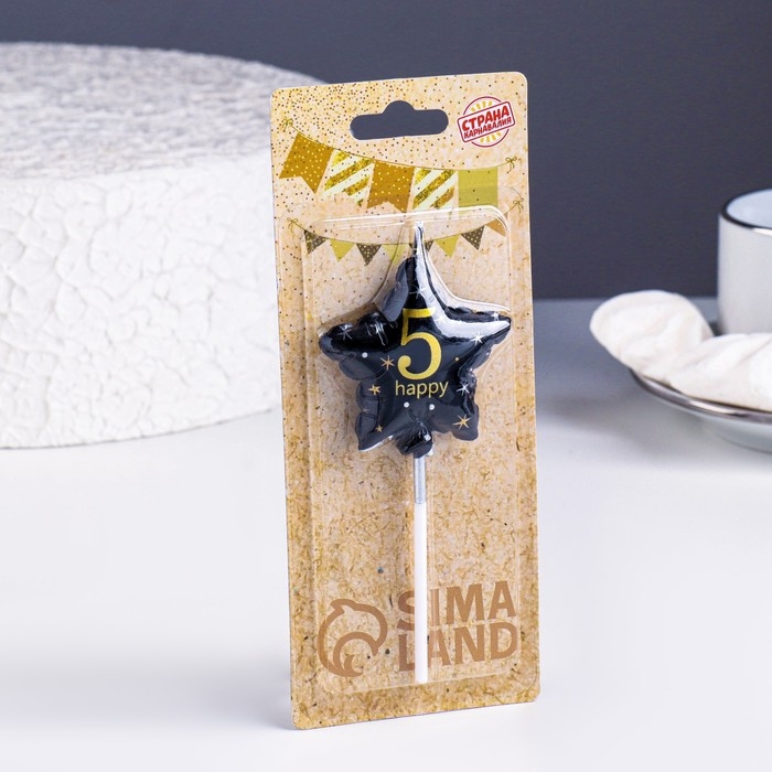 Свеча в торт на шпажке "Воздушный шарик.Звезда", цифра 5, 5,5 см, черная с золотом
