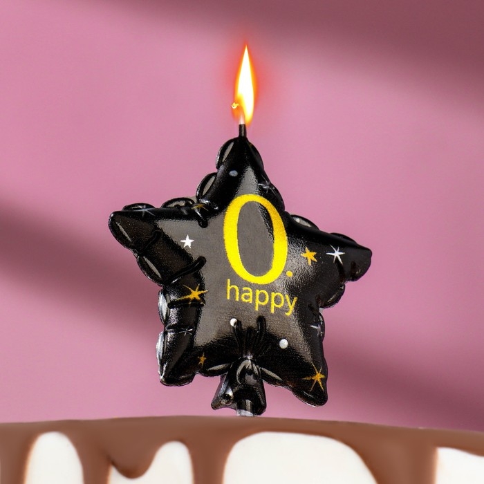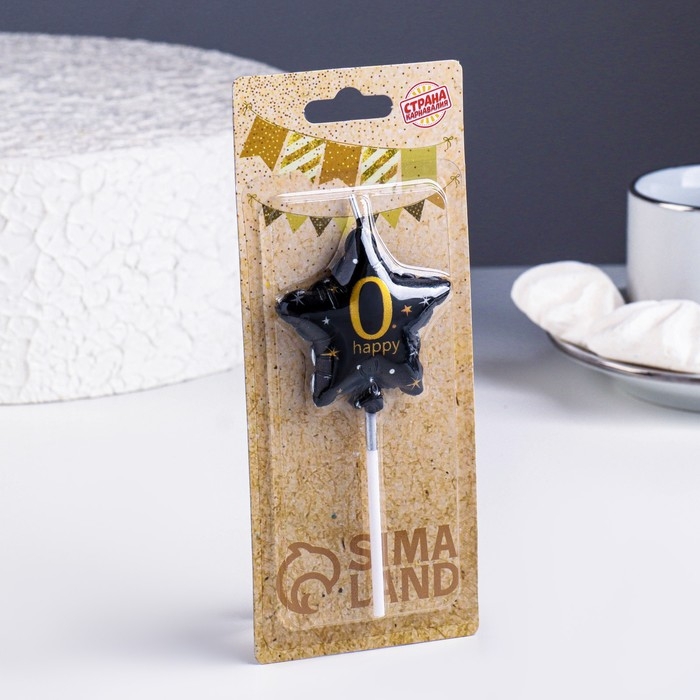Свеча в торт на шпажке "Воздушный шарик.Звезда", цифра 0, 5,5 см, черная с золотом