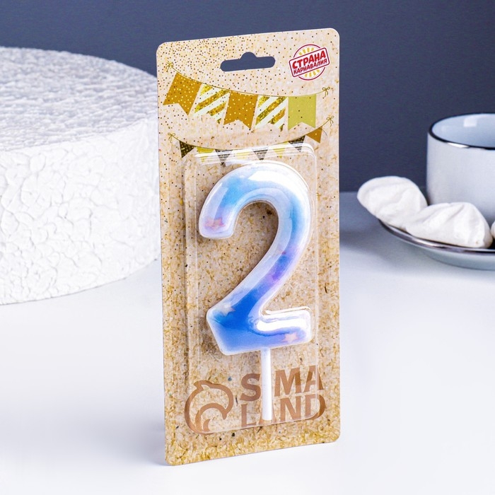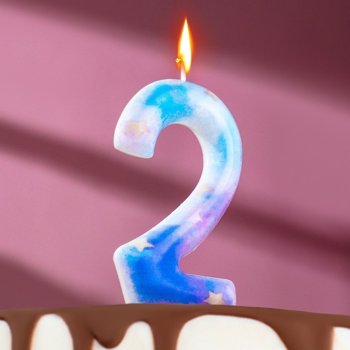 Свеча в торт на шпажке "Звездопад", цифра 2, 9 см, ГИГАНТ