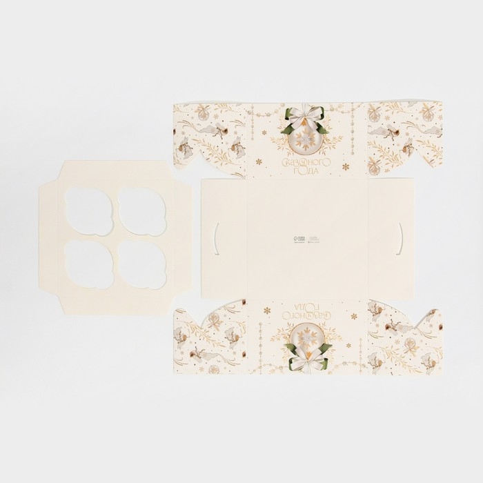 Коробка для капкейка «Бело-золотой », 16 х 16 х 10 см, Новый год
