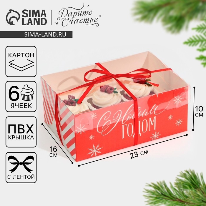 Коробка для капкейка «Поздравляю с НГ», 23 х 16 х 10 см, Новый год