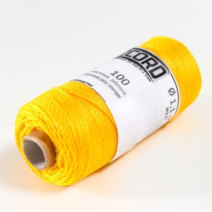 Нить кручёная 3-х прядная полипропиленовая, d=1.1 мм 100 м (желтая)