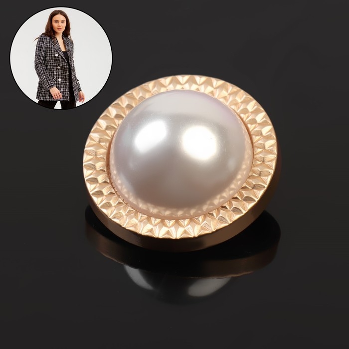 Пуговица металлическая на ножке, декоративная, d = 25 мм, цвет жемчужный