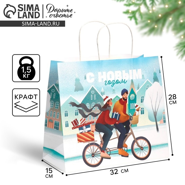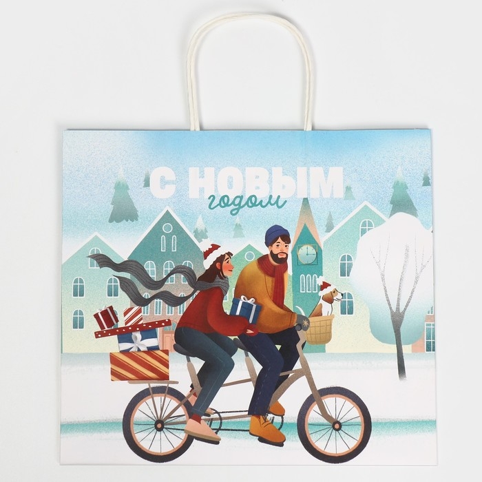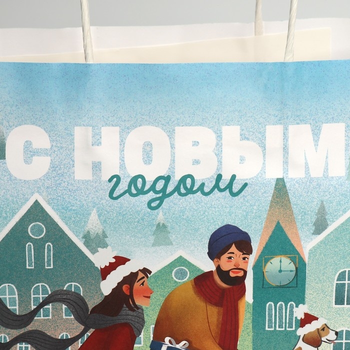 Пакет подарочный новогодний крафтовый «Вместе с тобой», 28 х 32 х 15 см, Новый год