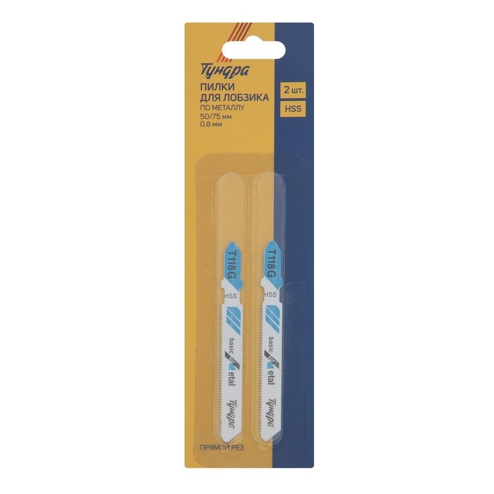 Пилки для лобзиков ТУНДРА, по металлу, прямой рез, HSS, 50/75 х 0.8 мм, 2 шт.