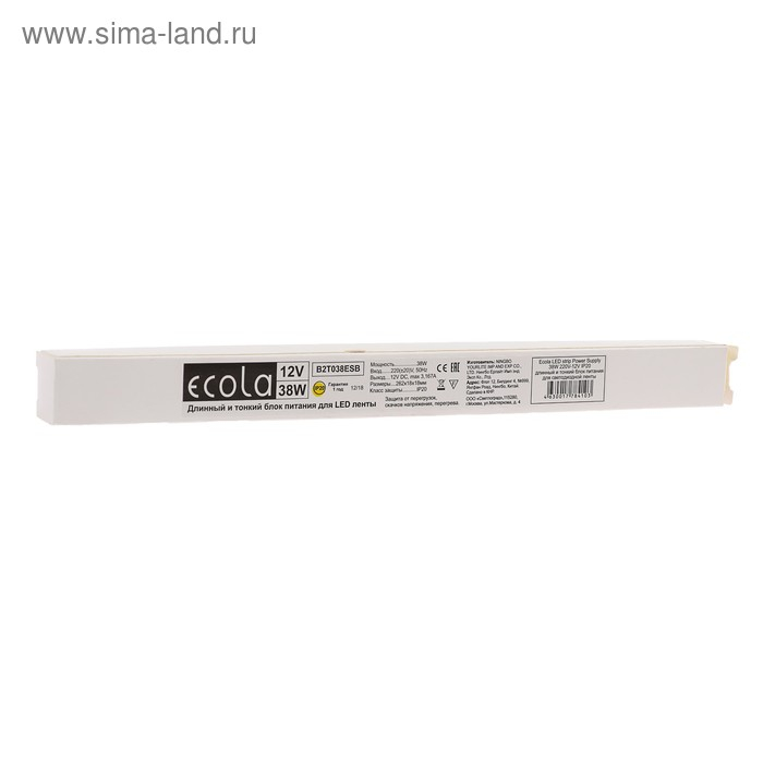 Блок питания Ecola для светодиодной ленты 12 В, 38 Вт, IP20