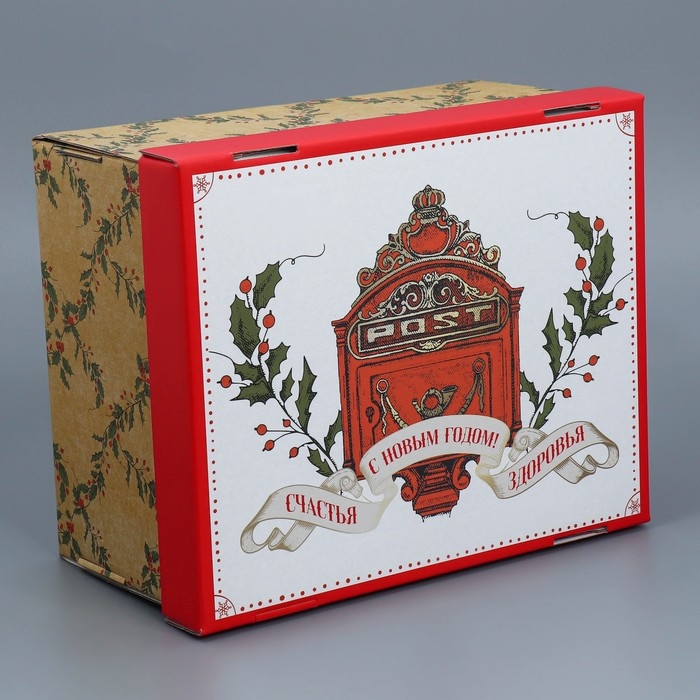 Коробка подарочная новогодняя складная «Ретро», 31,2 х 25,6 х 16,1 см, Новый год