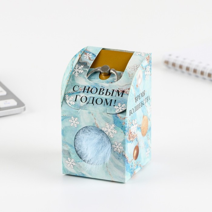 Подарочный набор новогодний брелок-пушистик и кольцо-подставка для телефона «С Новым годом!»