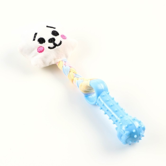 Игрушка мягкая для собак "Веселая мышка" с канатом и пищалкой, 20 х 13 см, жёлтая