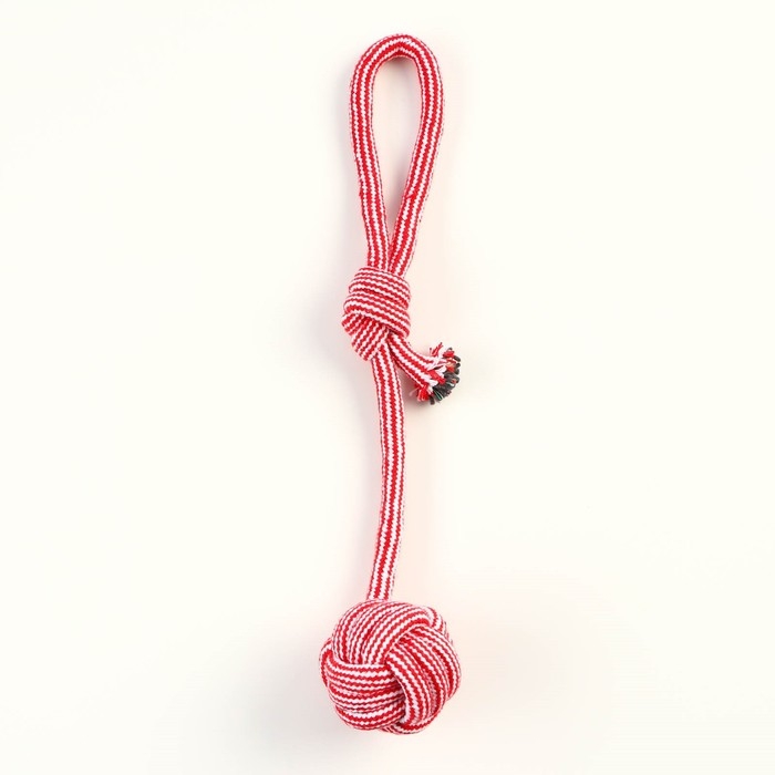 Игрушка-дразнилка для собак с шариком из каната, до 85 г, до 38 см, красная/белая