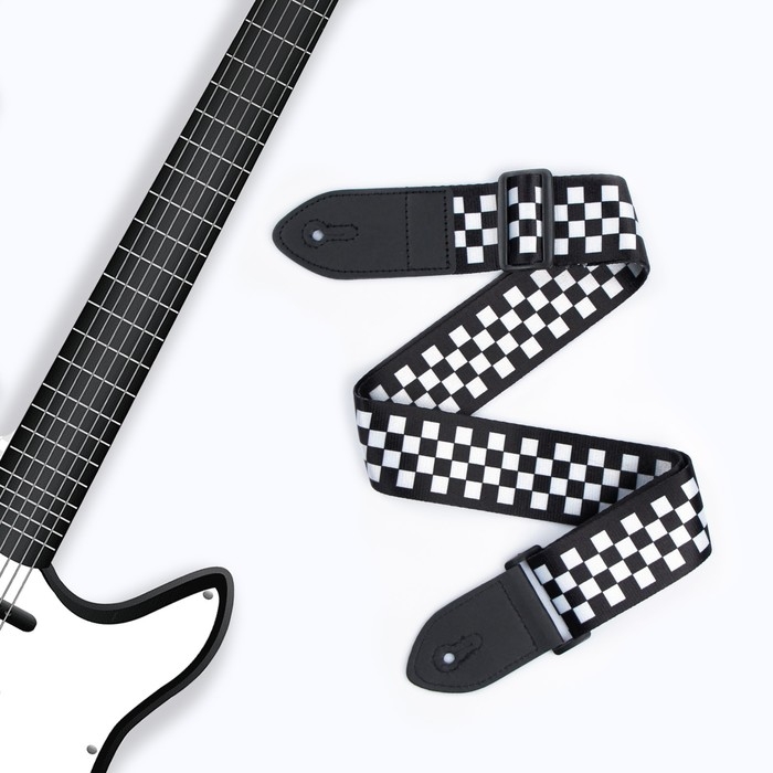 Ремень для гитары, шашечки, 60-117х5 см, черно-белый