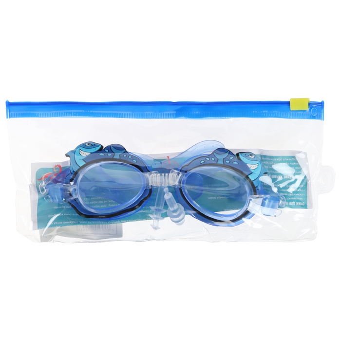 Очки для плавания детские «Акула», беруши, цвет синий