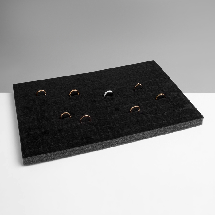 Подставка под кольца 100 мест, флок, 33,5×22,5×1,8 см, цвет чёрный